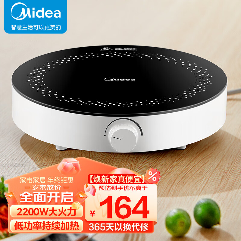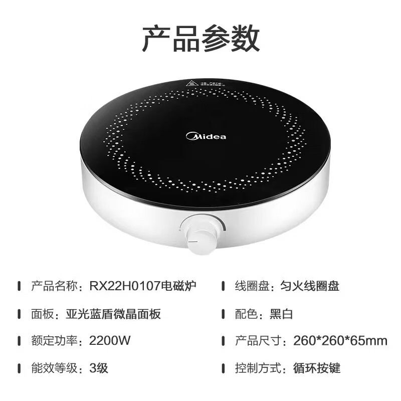 美的(Midea)电磁炉 家用2200W大功率 电磁灶火锅炉 爆炒电磁炉 火锅炒菜蒸煮 旋钮操控 C22-RX22H