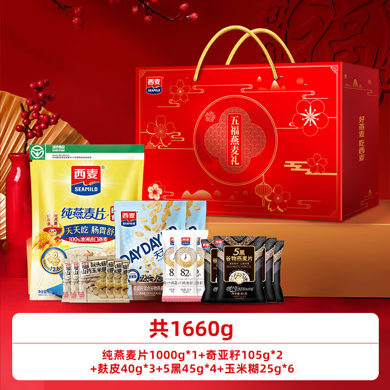 西麦 五福燕麦礼盒 1660g 营养健康年货礼品春节过年礼盒送老人长辈 1660g/盒