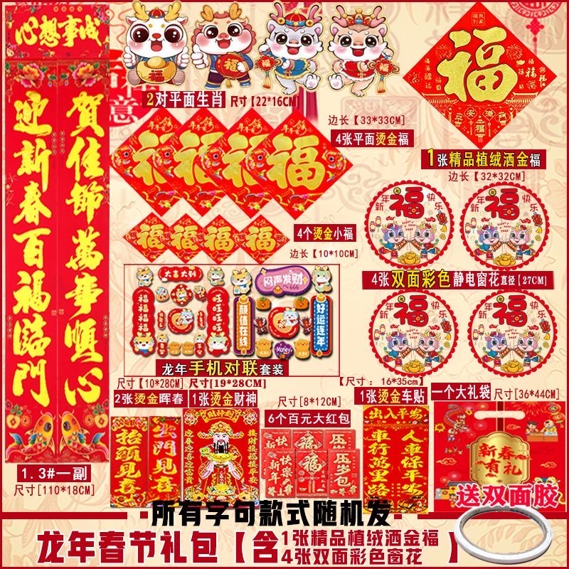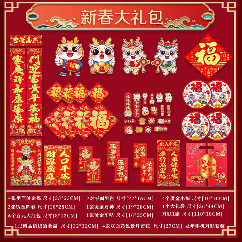 【2024龙年35件套大礼包】新年春联过年对联烫金年画门贴纸春节家 龙年春节对联礼包